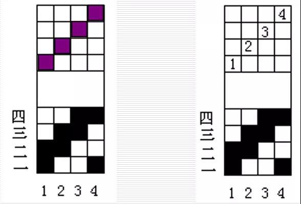 (2)画法:穿入某页综的经纱的沉浮规律即为该页综