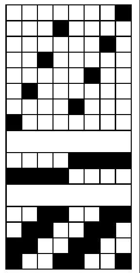 - 每1纵行表示1根经纱,纵行数=组织图中经纱根数=穿综循环经纱数。