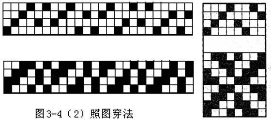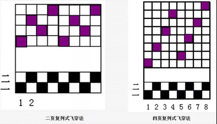 ②飞穿法:按经纱顺序间跳式地穿入各列综丝。