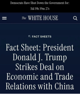 当地时间2025 年 11 月 1 日,美国白宫官网正式发布关于中美贸易协议的文本,表示美国将自2025年11月10日 起,下调此前为所谓遏制芬太尼流入而对中国产品加征的关税,整体税率下调 10 个百分点;同时,在 2026年11月10日 前,维持对中国产品“进一步加征对等关税”的暂停状态。