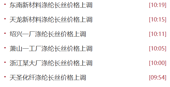 6日尾盘,涤纶长丝企业平均产销率231.2%,出现了新一波上涨。