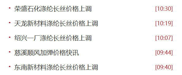 11月11日,多家聚酯工厂上调涤纶长丝报价,上调幅度在50-100元/吨,涤纶长丝的涨势还在延续。