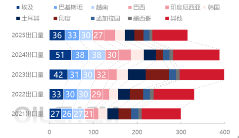 近日“消息面”继续发酵,印度政府公告显示,撤销对PTA、乙二醇、涤纶长丝POY以及FDY等多种产品的BIS认证要求。受此提振,国内涤纶民用丝对印度出口情况有望修复。然而近年来印度当地涤纶民用丝行业发展较为迅猛,或将在一定程度上压制中国对印度出口规模,且根据海关总署数据显示,中国涤纶长丝出口主要集中在埃及、巴基斯坦、越南等国家,因此BIS认证取消对中国涤纶长丝实际出口影响有限。毋庸置疑,此消息对于短期涤纶长丝市场走势起到一定推动作用。