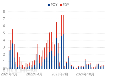 自2023年印度政府对涤纶POY以及FDY发起BIS认证之后,2024-2025年中国涤纶POY以及FDY对印度出口受到了明显拖累。