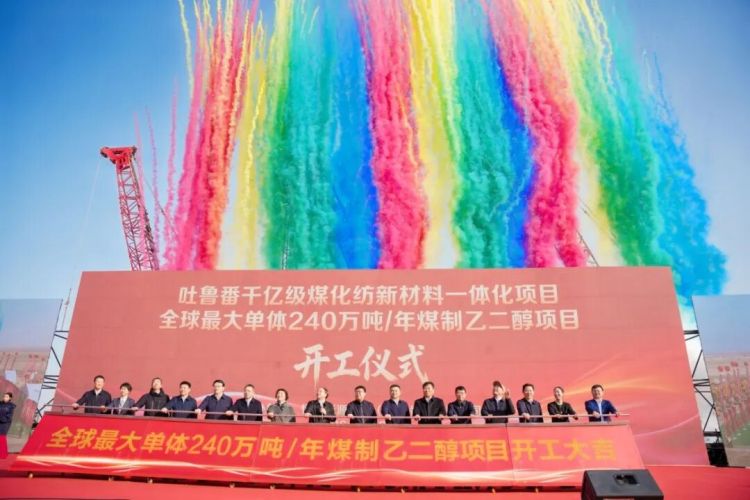 3月20日,恒逸投资建设的全球最大单体煤制乙二醇项目——吐鲁番市煤化纺一体化项目一期年产240万吨高品质纤维用煤制乙二醇项目,在吐鲁番经济开发区煤基新材料循环产业园区正式开工建设。