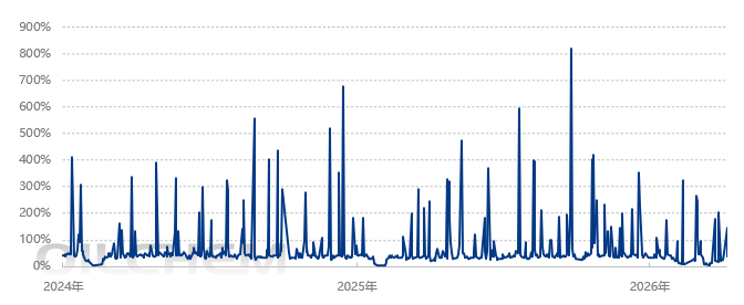2024-2026年国内涤纶长丝日均产销率走势图