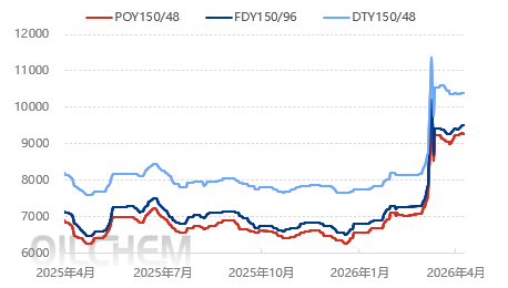 2025-2026年国内涤纶长丝主流型号价格走势对比(单位:元/吨)