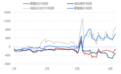 2026年国内聚酯主要品种利润对比(单位:元/吨)
